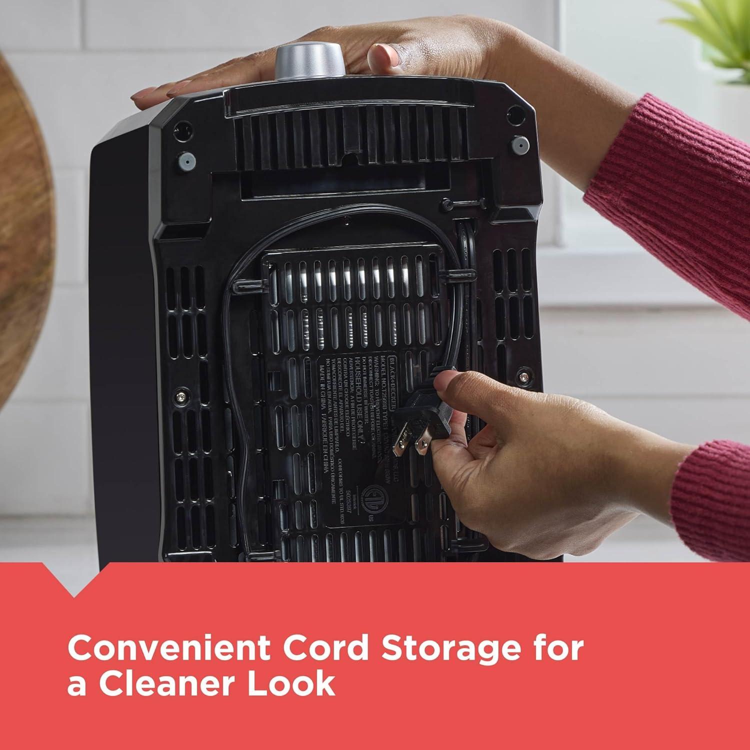 - Slide-out crumb tray that keeps clean-up quick and mess-free