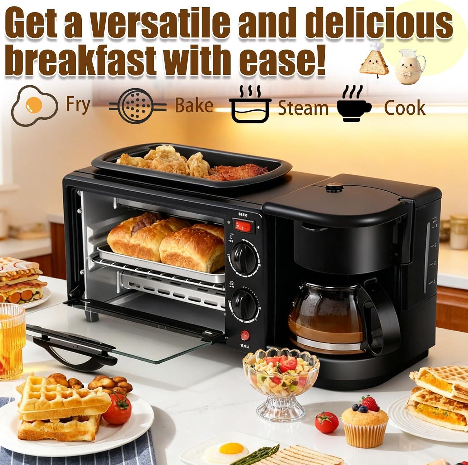 - Multi-functionality: Oven, coffee maker, griddle, and toaster in one unit