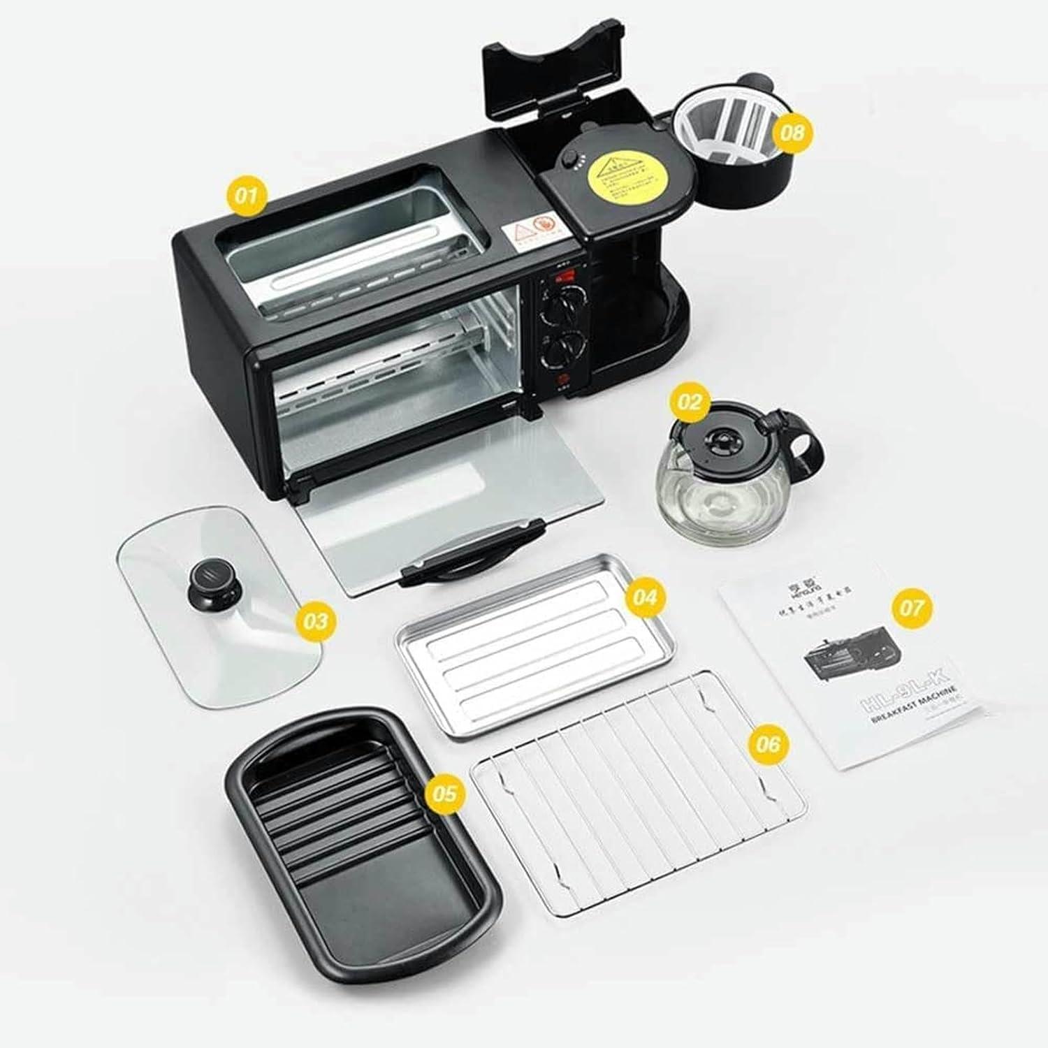 The design of this breakfast station truly emphasizes practicality without sacrificing style. Its compact footprint makes it an excellent choice for apartments and kitchenettes where counter space is at a premium. Crafted with stainless steel, it feels sturdy and built to last, while the black microcrystal panel adds a modern, sleek touch to any kitchen decor. The thoughtful separation of heating elements-for the coffee maker, griddle, and toaster oven-gives us precise control and avoids overheating. Plus, safety features like dry burn prevention and adjustable temperature settings from 100°C to 230°C provide peace of mind during daily use.