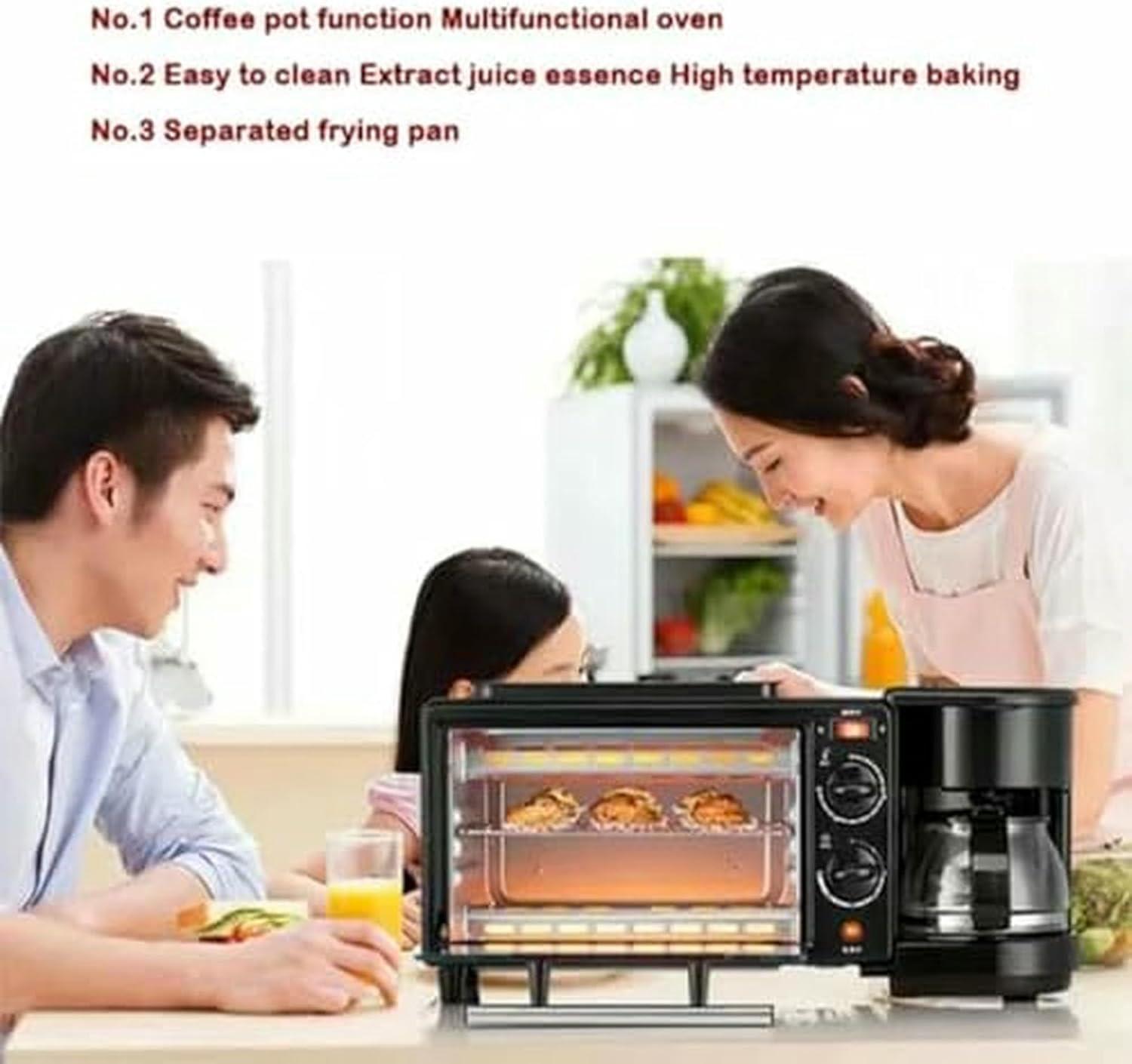 This all-in-one breakfast station brings unparalleled convenience to our mornings by combining multiple cooking essentials into a single compact unit. The multifunctional design incorporates a toaster oven, a coffee maker, and a non-stick frying pan, enabling us to prepare a full breakfast without juggling separate appliances. With a spacious 9L capacity oven, we can bake bread, pastries, or even small pizzas while simultaneously frying eggs, bacon, or pancakes in the skillet.The integrated coffee maker brews up to four cups efficiently and keeps the coffee warm, perfect for a leisurely morning or quickly fueling up before heading out.