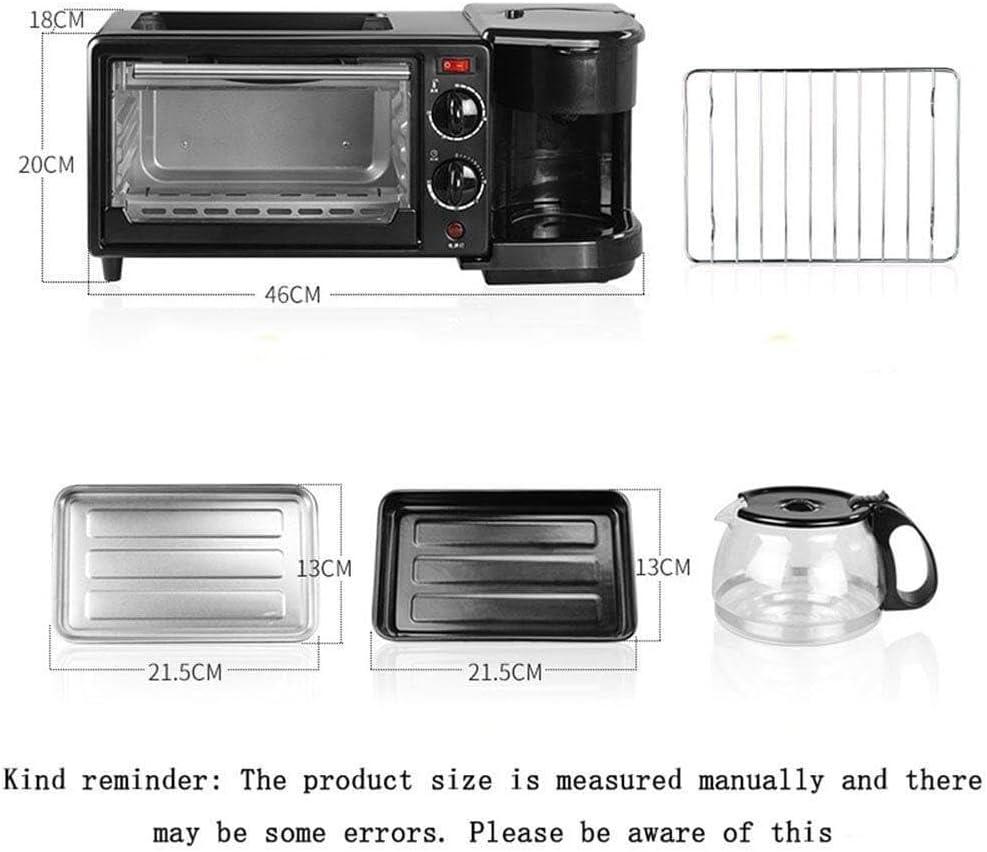 Using this all-in-one breakfast appliance has truly simplified our morning routine. The 3-in-1 design combines a toaster, frying pan, oven, and coffee maker in one compact unit, allowing us to prepare a full breakfast effortlessly and without the clutter of multiple gadgets. The oven’s 9-liter capacity is surprisingly spacious, accommodating everything from baking bread to warming small pizzas.The mechanical timer with 3 gears and adjustable temperature control made it easy to tailor cooking to our preferences, whether frying eggs on the non-stick skillet or baking pastries with consistent results.