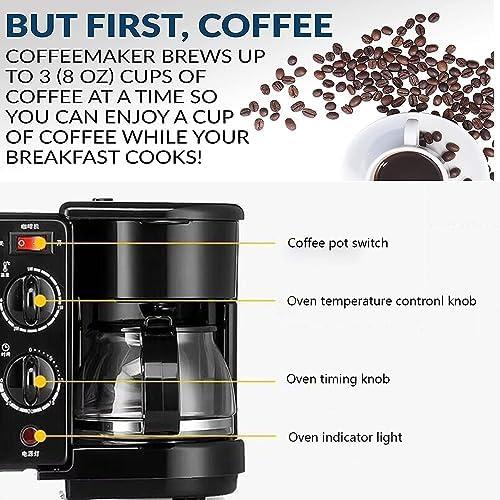 | All-in-one design combines coffee maker,griddle,and toaster oven,saving countertop space. | The compact size limits cooking capacity; large meals may require multiple batches. |