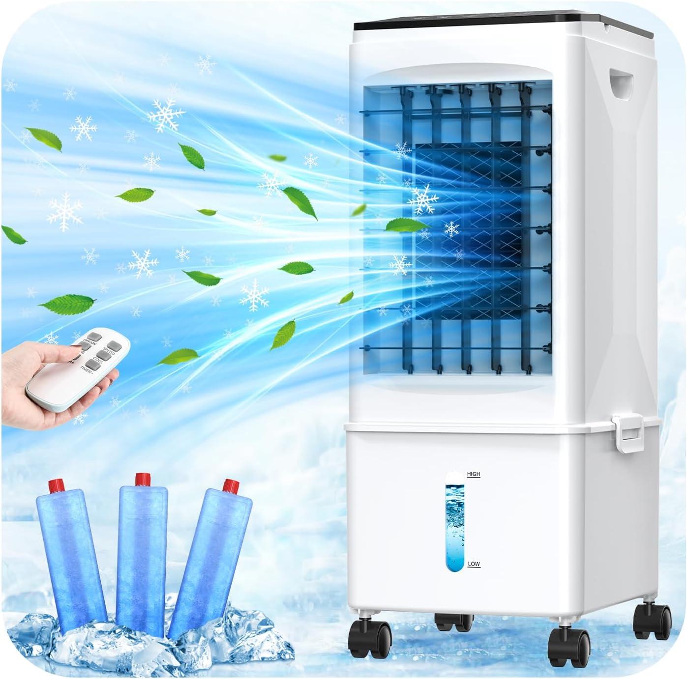 FANCOLE 43INCH evaporative Air Cooler with LED Screen, 15H Timer for Auto off, 4 Modes, 3 Speeds Swamp Cooler Air Conditioner, Touch and 20FT Remote, 70° Wider Oscillating Fan for Bedroom Office Study