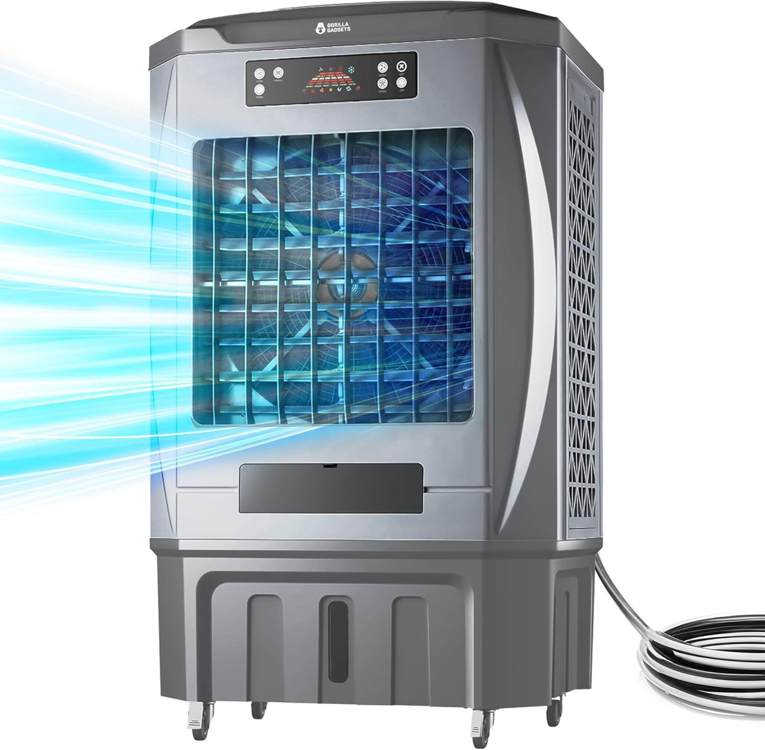Maintenance is simplified thanks to a larger drain and a liquid level indicator that automatically shuts off the pump, helping protect your investment by preventing damage due to low water levels. Variable speed settings offer customizable airflow for different environments. While weighing 190 pounds,its portability is enhanced with a compact footprint,making it suitable for both indoor and outdoor use. Though, some users might find the size somewhat bulky for smaller spaces, and even though energy-efficient, it requires regular water refills to maintain optimal performance.