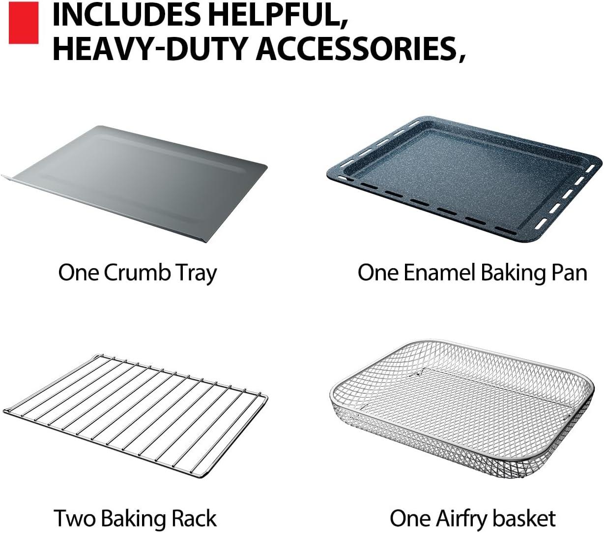 | Generous 34QT / 32L capacity fits large meals-think whole 10-lb chicken or two 13-inch pizzas simultaneously. | At 1750W power, it can draw notable energy; best suited for kitchens with ample power supply. |