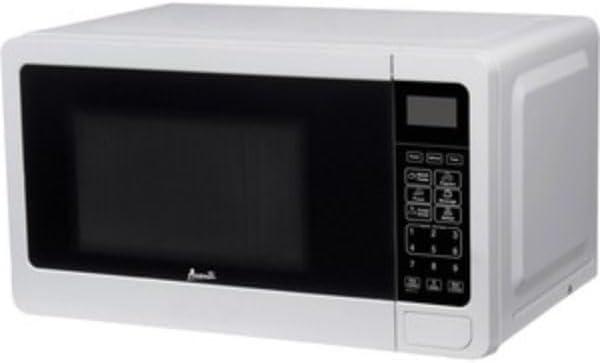 Lifting it from the box you notice a modest weight — solid enough to feel reassuring, light enough to shift with one hand.The house-brand 0.7 cu. ft. Countertop Microwave Oven (White) shows up smaller in person than the listing implied, more like a compact companion than a centerpiece. The exterior is cool and smooth under your palm, the matte body giving way to a glossy door that picks up the kitchen light and the odd fingerprint. Sliding the door open makes a soft, hollow thunk; buttons and the dial reply with a small, precise click under your thumb. it settles on the counter with a quite visual balance, and when the interior lamp comes on you get a neat warm pool of light that frames the turntable — an immediate, lived-in first impression.