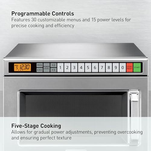 For businesses that rely on efficiency and speed in their food preparation, this commercial microwave stands out as a valuable tool. With its 2100 watts of power, it delivers rapid heating, making it an excellent choice for environments like quick-serve restaurants and catering operations. The 30 programmable menus and 15 power levels simplify meal prep, allowing us to serve dishes consistently and quickly.Additionally, we appreciate how it accommodates both small and large servings effortlessly, which is crucial during peak service hours.