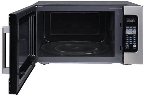 The stainless steel finish of this countertop microwave exudes modern elegance, making it a stylish addition to any kitchen. Its smooth, reflective surface not only enhances its aesthetic appeal but also provides durability against scratches, fingerprints, and smudges. We appreciate the thoughtful design details, including the user-friendly pull-handle door that seamlessly opens to reveal a spacious 2.2 cubic feet interior. It effortlessly accommodates a full-size dinner plate, thanks to the rotating glass turntable that guarantees even heat distribution.