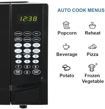 the cooking performance of our countertop microwave is impressive, offering 900 watts of power along with 10 power levels to cater to a variety of cooking needs. The six pre-programmed settings, which include options for popcorn, potato, pizza, frozen vegetables, beverages, and reheating, make it effortless to prepare meals and snacks quickly. We found the digital timer and weight defrost functions particularly useful, allowing for precise cooking control that enhances the overall efficiency of our kitchen tasks. The large LED display is easy to read, ensuring we never miss a step while preparing our food.