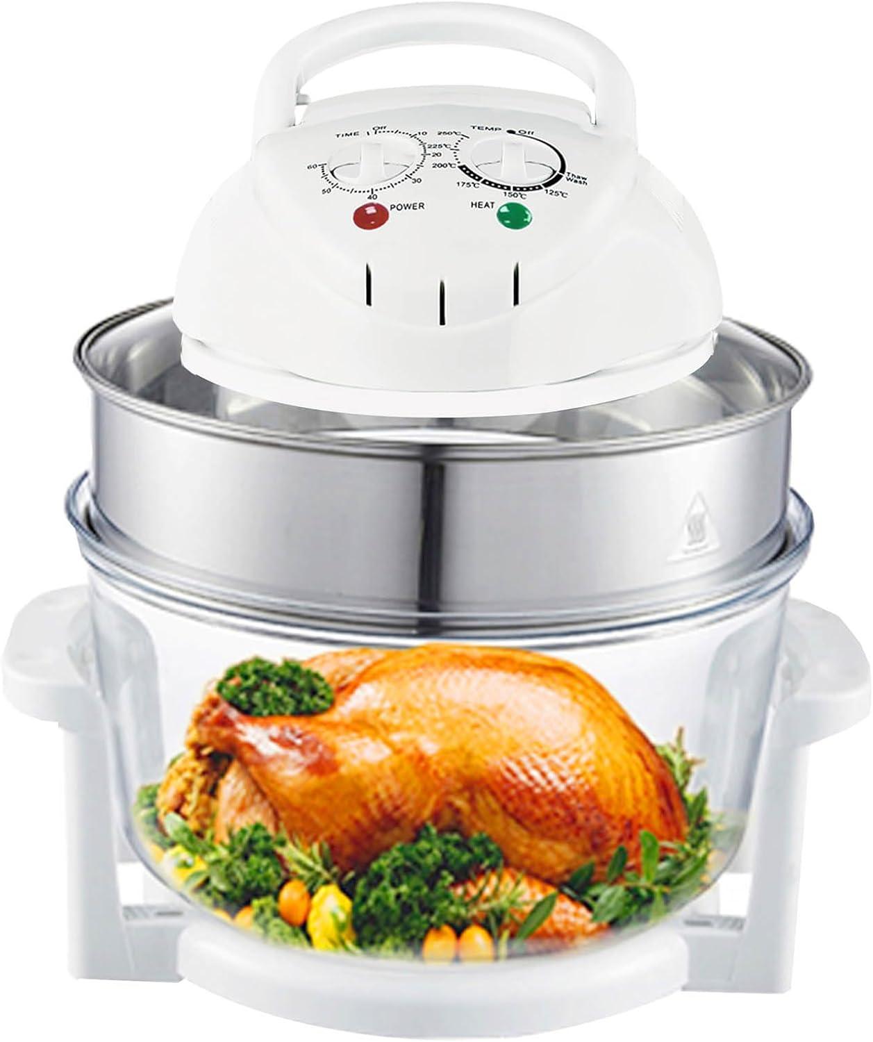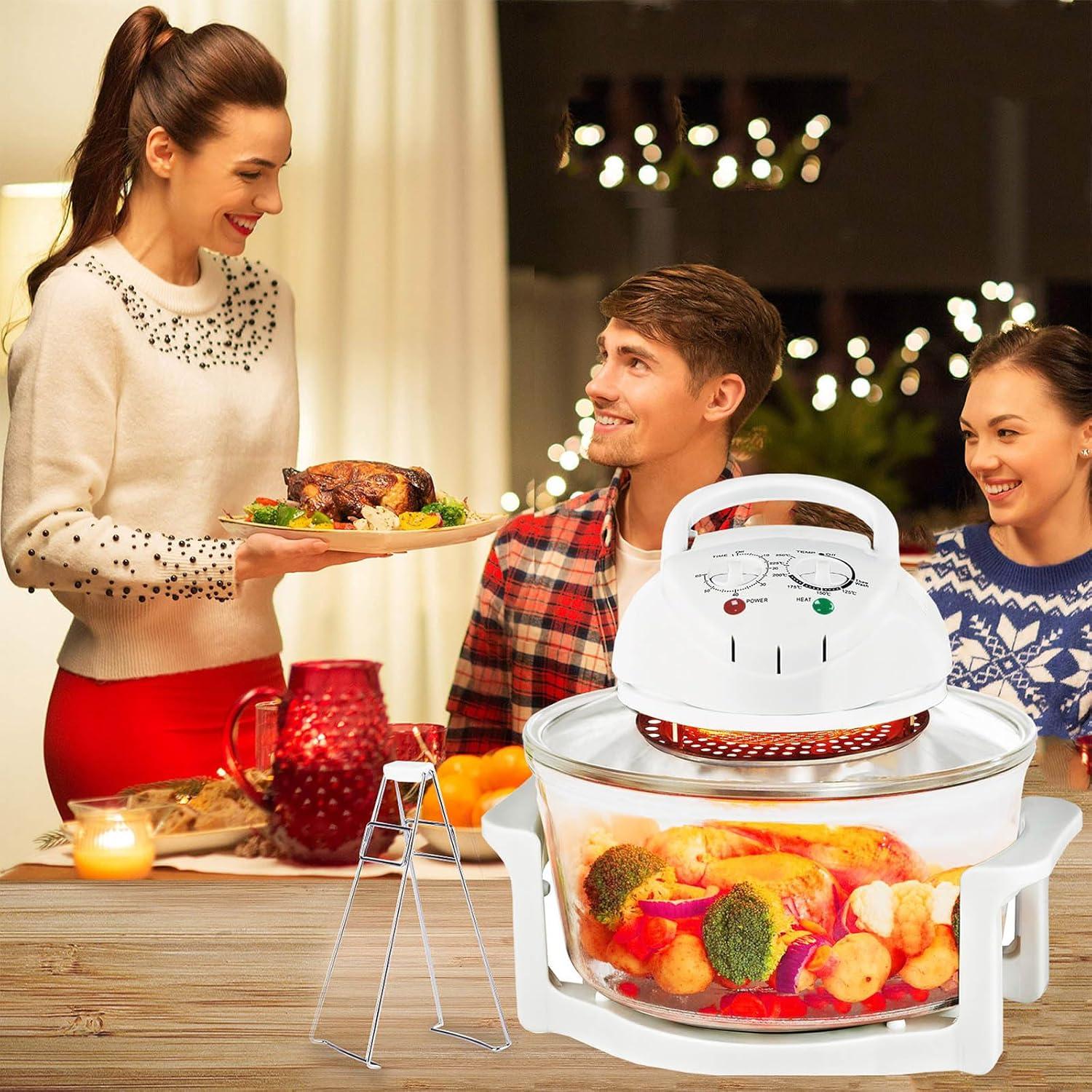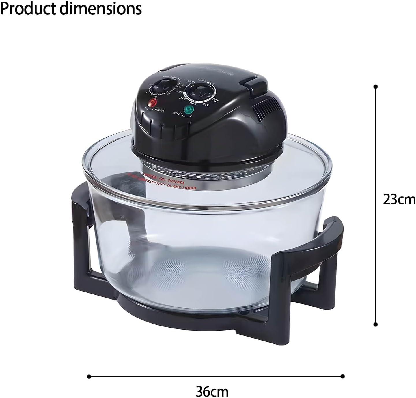 Who should buy: We reccommend this 12L countertop roaster to small families, busy couples, and health-conscious cooks who want one compact unit to handle multiple tasks—air frying, baking, roasting, grilling and defrosting—without hauling out a full-size oven. It’s ideal for people who want crisp results with less oil thanks to efficient air circulation, those who value safety features like an automatic shutoff and over‑warm protection, and anyone who appreciates easy cleanup as the glass container and removable parts are dishwasher safe. best fits include: