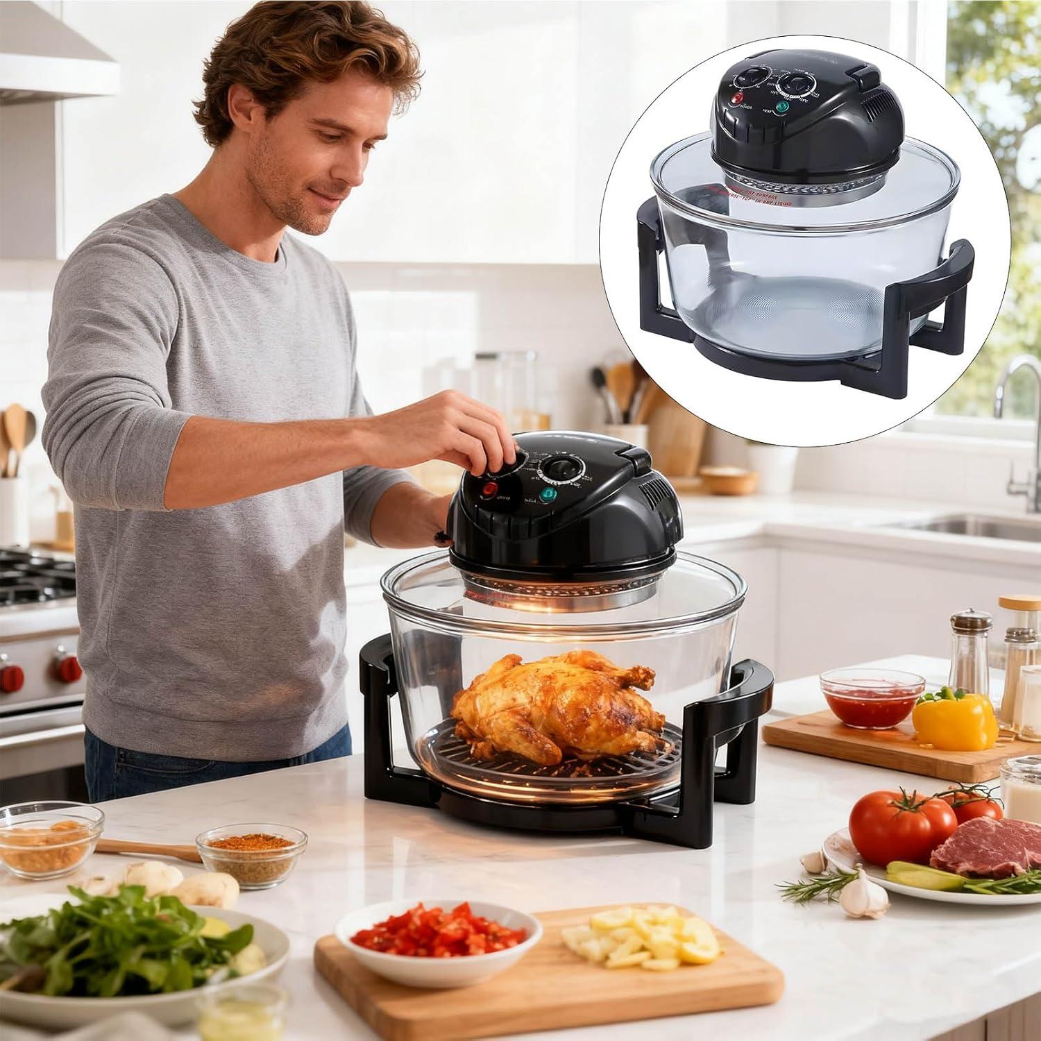 We’ve spent the last week cooking wiht the extra Large Glass Air Countertop Toaster Oven — and it quickly became our go-to for busy weeknight meals and small gatherings. The clear glass chamber makes it easy to watch food crisp up while the 12L capacity gave us enough room for a tray of fries and a few chicken pieces without crowding. Using the temperature dial and timer felt intuitive, and the strong airflow delivered noticeably crisp results with very little oil, which helped keep our meals lighter. Safety features like overheat protection and the auto-shutoff offered peace of mind during longer cooks,and the removable,dishwasher-safe parts made cleanup straightforward. In the full review we’ll dive into performance across modes (air-fry, bake, roast, grill, defrost), ease of use, and whether this countertop roaster truly fits a family kitchen.