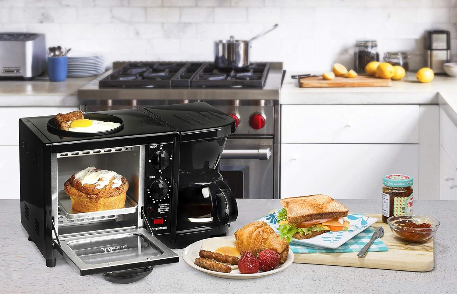That said, it’s not built for feeding a crowd — the 4-cup carafe and compact oven are best suited to singles, couples, dorm rooms, RVs or offices rather than large families or avid bakers. If our mornings call for efficiency, small footprint, and straightforward operation, this unit fits the bill.Ready to streamline your mornings with us? See the Maxi-matic EBK-200B 3-in-1 Breakfast Station on Amazon and decide if it’s the small-kitchen companion your mornings have been missing.