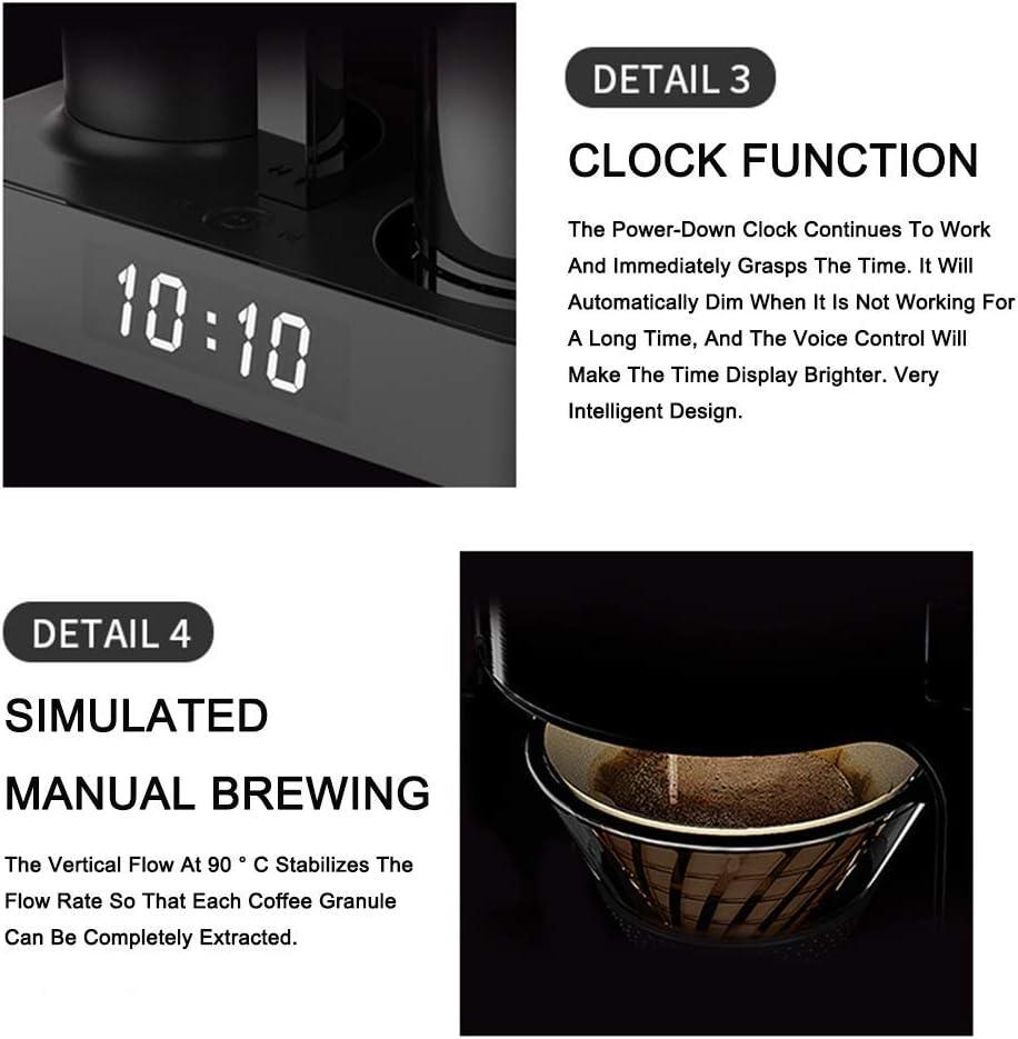 Performance aligns with the machine’s modest specs: 300 ml capacity (about 5 cups or less by small-cup measure), 600 W power, and 110–220 V compatibility — ideal for simple American-style drip coffee and stable extraction thanks to the vertical 90° water flow. We noted there’s no dedicated insulation in the tank, so the cup cools like a regular cup rather than a thermos, but the anti-dry heat preservation and bright clock/voice-highlighted time make brewing predictable and safe. Below is a quick spec snapshot we kept on hand while testing: