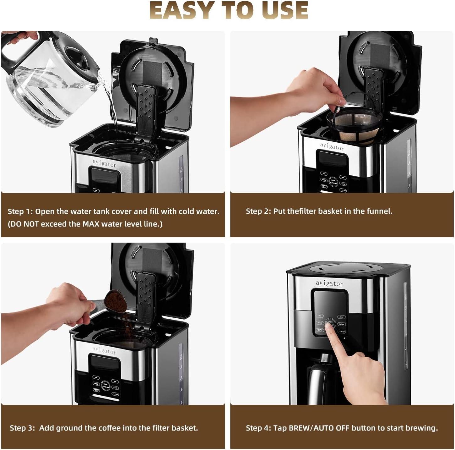 As we wrap up our thoughts on the Avigator 12-Cup Programmable Drip Coffee maker, it’s clear that this machine brings a lot to the table-versatility, convenience, and thoughtful features like the 24-hour programmable timer, customizable temperature settings, and an easy-to-clean design. Whether you’re brewing a single cup or a full pot to share, its advanced showerhead system promises a rich, well-extracted coffee experience every time.The stylish stainless steel finish makes it a sleek addition to both home kitchens and office spaces alike.