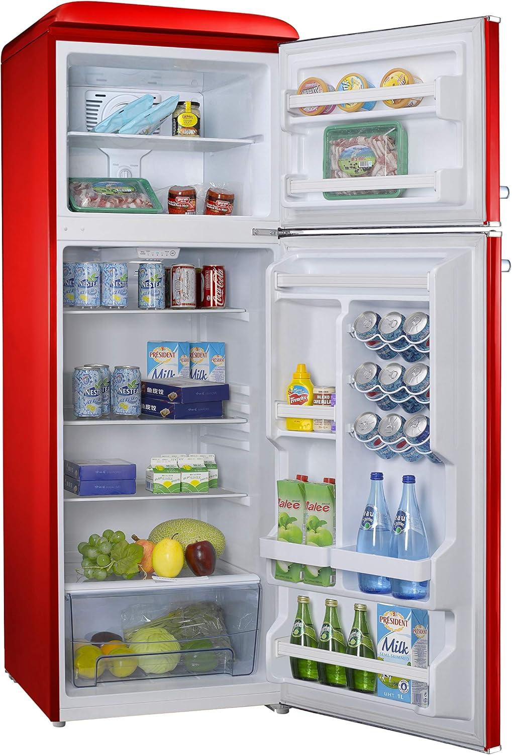 From the moment we saw its retro-inspired design,this refrigerator immediately stood out in our test kitchen. Its vibrant red finish combines classic style with modern functionality, making it a charming addition to any home. The dual-door layout offers a top mount freezer compartment paired with a spacious fresh food section, delivering an overall capacity of 12 cubic feet. We appreciated the adjustable electrical thermostat, wich allows precise cooling control between 32°F and 47°F, ensuring food stays fresh longer. Inside,four full slide-out glass shelves and a crystal crisper with glass cover provide flexible storage options,while two leveling front legs guarantee stable placement on any floor.