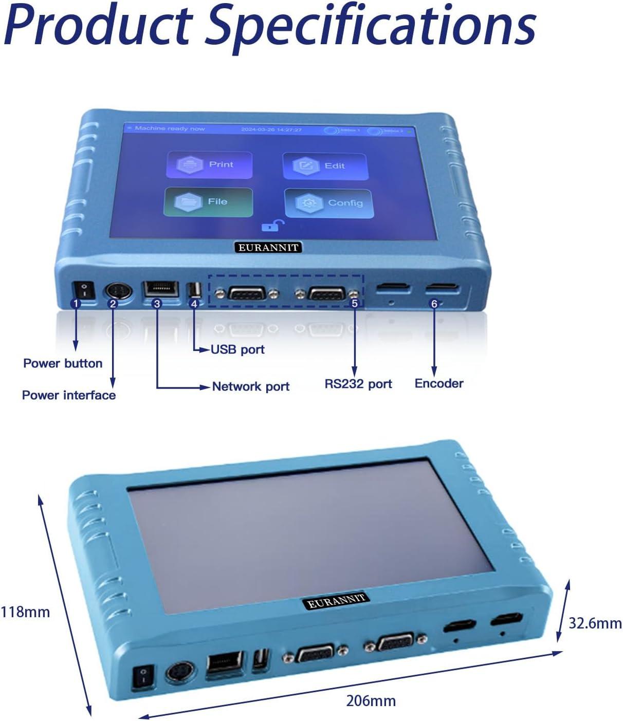 The 7-inch resistive touch screen is a game-changer for anyone looking to streamline their production line printing tasks.Featuring an intuitive interface, it supports over 20 languages, which makes it versatile for multi-national operations or diverse teams. Navigating thru settings feels smooth and responsive, allowing us to easily design and edit print content directly on the machine without the need for complex software. What stood out the most was the capability to import layouts via USB flash drive – a simple but powerful feature that lets us quickly switch between different batch codes, QR codes, or logos without interrupting workflow.