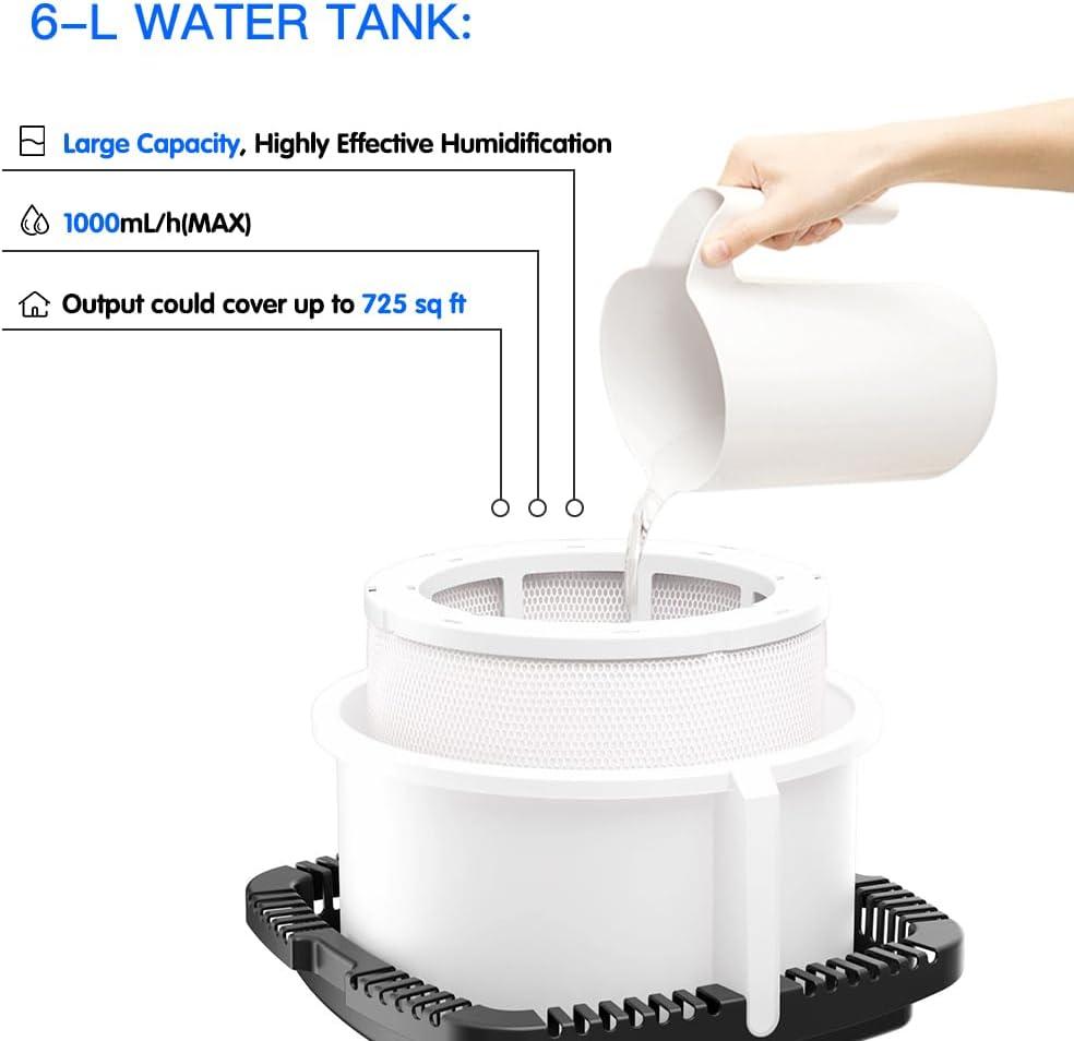 Living with it over time, you find its low, steady presence folding into the background of mornings and late evenings. The YougetTech Evaporative Humidifiers for Bedroom Large Room, 1.6 Gallon No Mist Humidifiers, 30 dB Quiet, Output 1000 ml/h, 10 Speed Whole-House Humidifier up to 725 sq.ft ends up parked by a bedside table or on a landing, its plastic finish gathering the faint scuffs and a thin film of dust that mark regular use. In daily routines you notice the small habits it creates — topping up the tank,nudging a dial,the occasional wipe along its surface — and those gestures become part of the room’s quiet rhythm. Over weeks it simply stays, settling into routine.