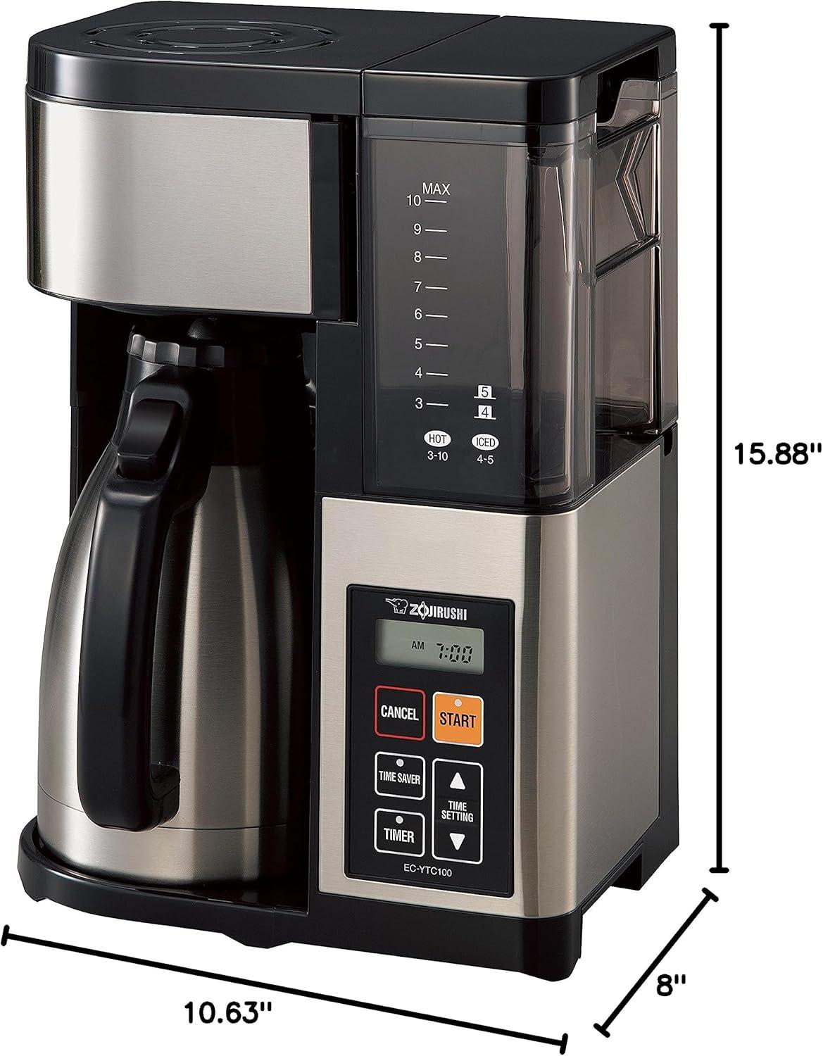 Lifting Zojirushi EC-YTC100XB — I’ll call it the EC-YTC — onto your counter, you notice a reassuring weight that makes it feel settled rather than fussy. The stainless carafe is cool under your palm, its brushed skin catching light in thin ribbons while the matte black housing offers a softer, slightly grippy contrast. start a cycle and a low, purposeful hum fills the kitchen, punctuated by precise little drips into the carafe — sounds that feel ordinary and domestic.The tapered silhouette and tidy seams give a composed visual balance, and when you trace the joints with a finger they register as tight and exact, not decorative. Your first reaction is to appreciate how quietly present it is indeed: built to be handled, not to shout.